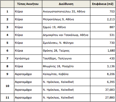 For detailed information about the properties and the procedure you can visit the www.e-publirealestate.gr as of June 17, 2013..